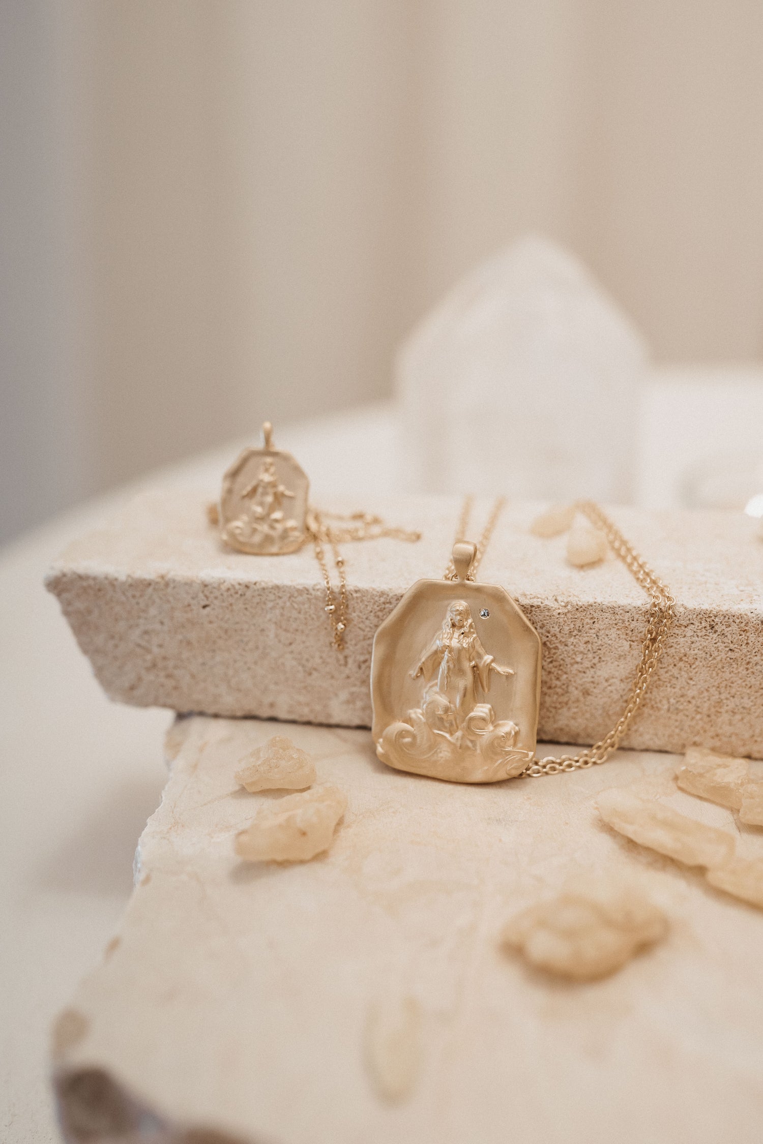 Sacralizar lo cotidiano a través de iconografía sagrada. Nuestras joyas de alta vibración están fabricadas a mano, diseñadas cuidadosamente para cumplir su función. Eleva tu frecuencia con nuestras joyas espirituales.