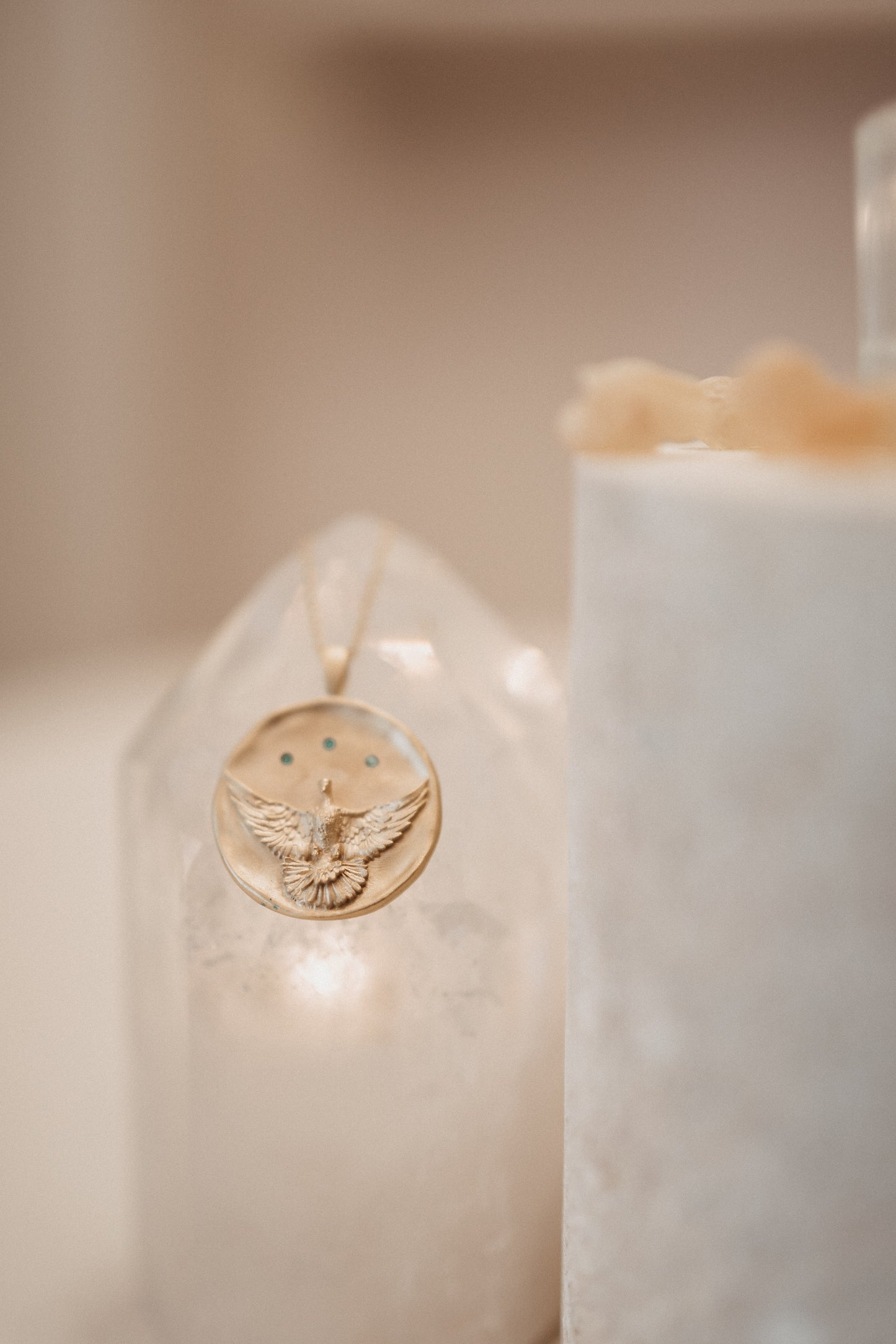 La paloma con las estrellas, representa el despliegue de las alas, de la libertad, el vuelo. También iconográficamente representa la paz. Significa experimentar el viaje espiritual bajo la guía del Alto.